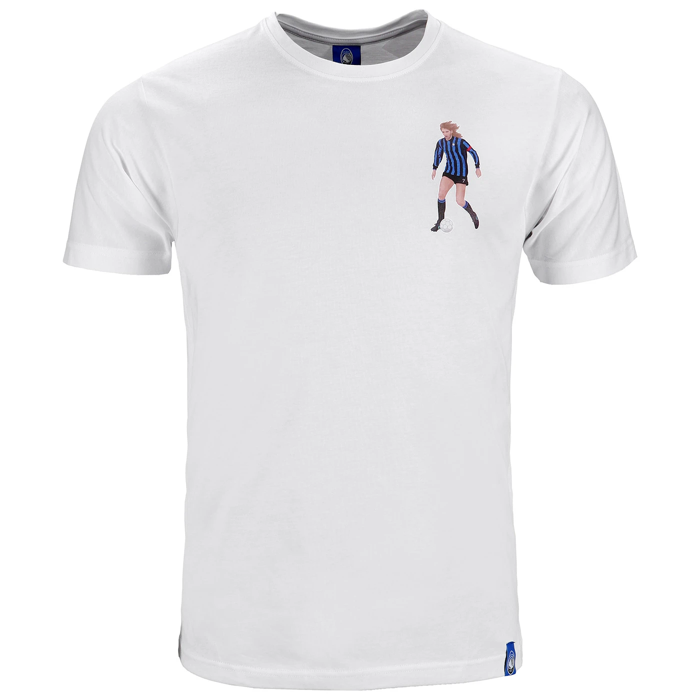 The shirt made with care and passion, is an authentic tribute to Strömberg and his legacy at the club. Its elegant and timeless design is characterised by an impeccable white base that suits any occasion. On the chest is a print depicting the player and the essence of his iconic presence on the pitch.